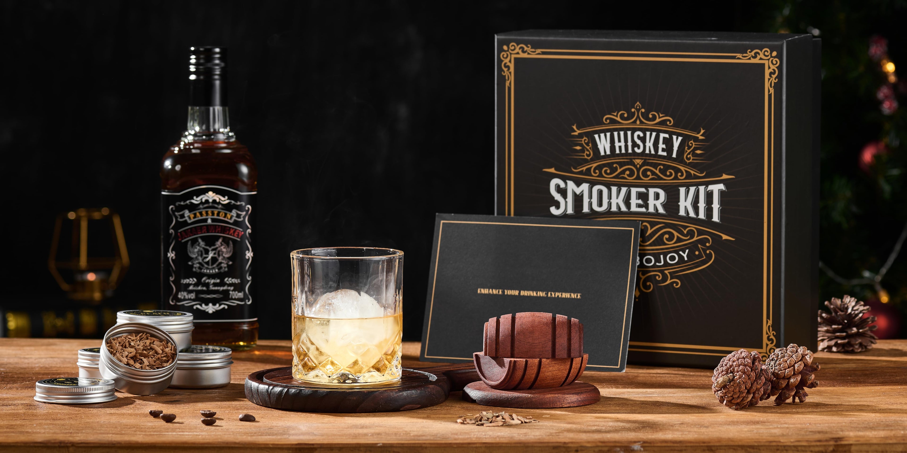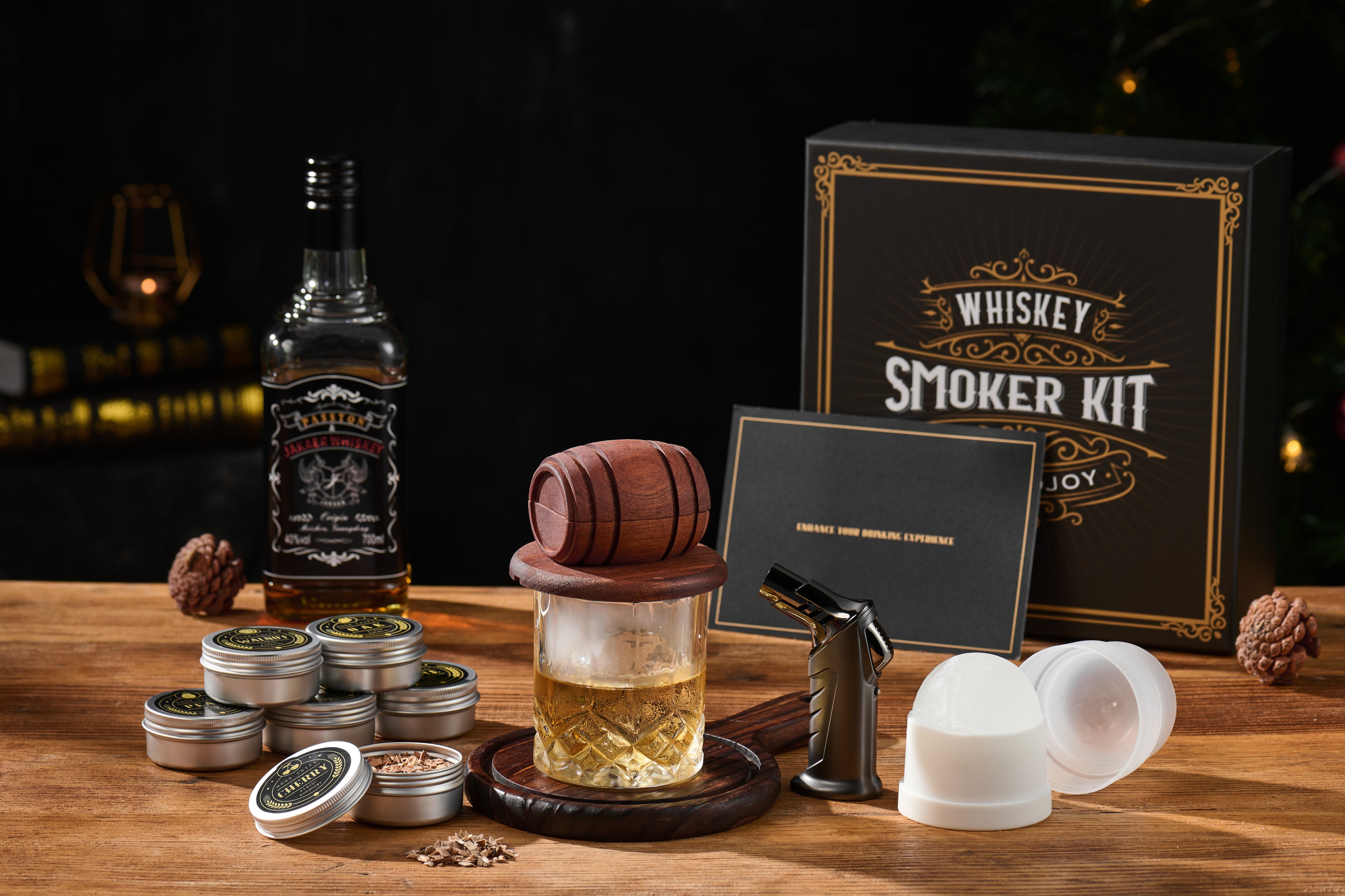 Bourbon Gifts for Men - Cocktail Smoker Kit with Torch and Wood Chips for Whiskey and Bourbon, Old Fashioned Cocktail Kit, Whiskey Gifts, for Dad, Husband and Cocktail Lovers